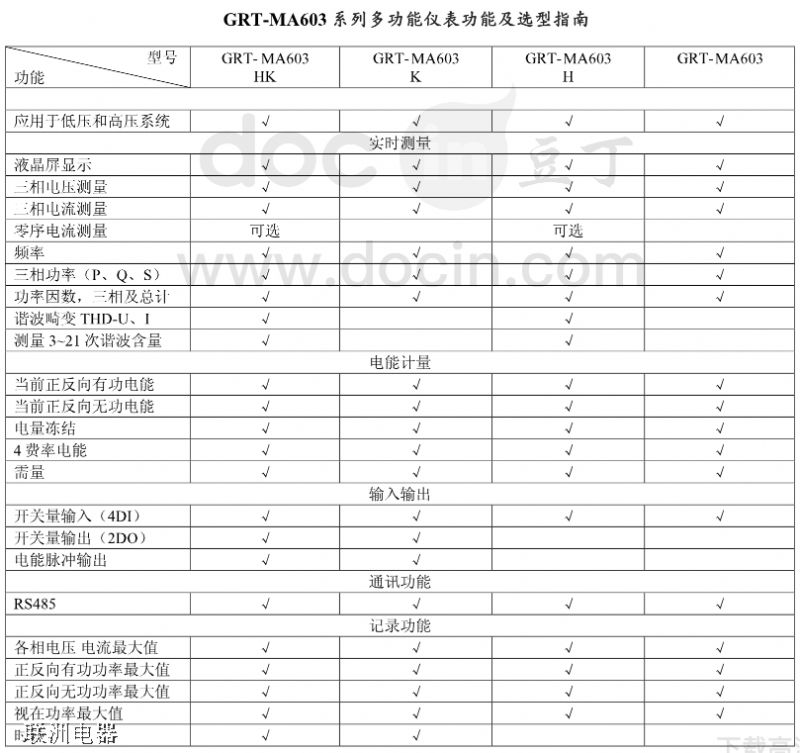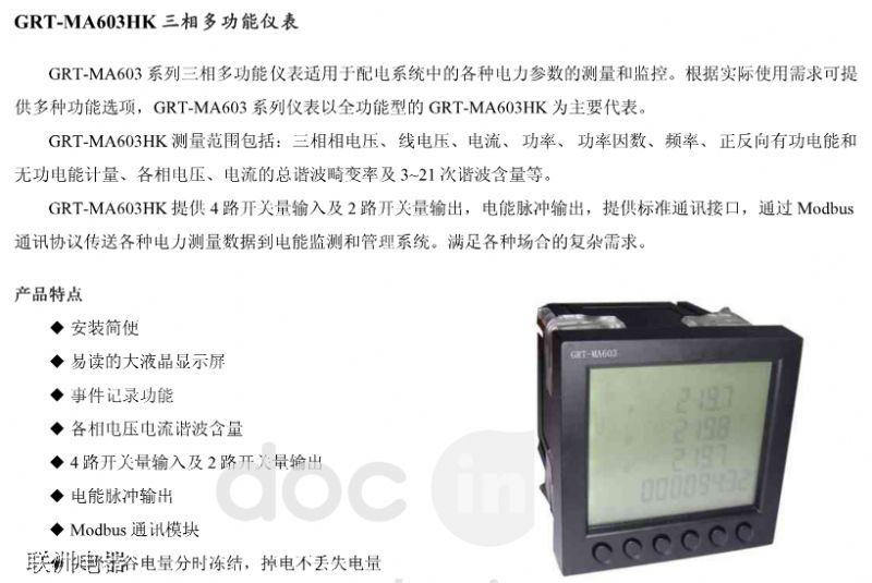 GRT-MA603 系列多功能表型號(hào)說明及技術(shù)參數(shù)
