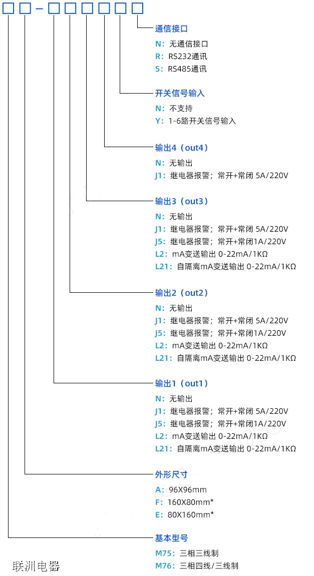 M75A、M76A多功能電力測量記錄儀表型號說明