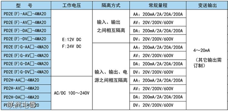 • PD2E/PD2F/PD2H系列電壓電流隔離變送器