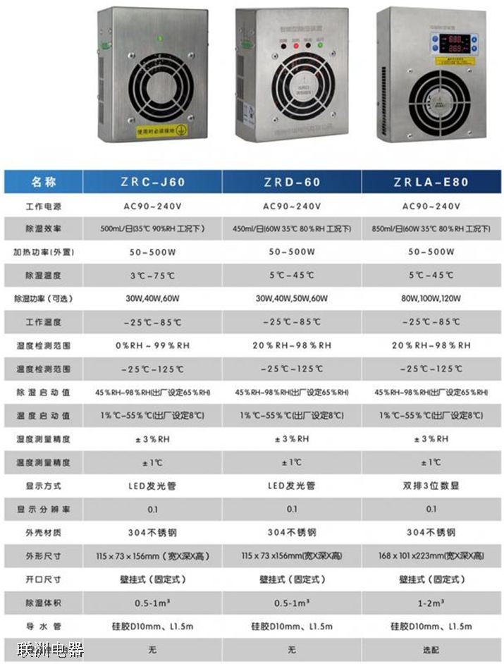 ZRC-J60、ZRD-60、ZRLA-E80電子除濕器