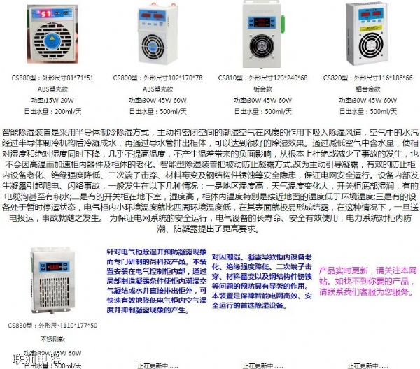CS800、CS810、CS820、CS880配電柜除濕器 CS800、CS810、CS820、CS880系列的除濕器用于開關(guān)柜、配電柜、控制柜的除濕之用。這是一種排水弄除濕器,功率有大有小和相應的排水量。具體參數(shù)如下:看看視頻: Home > 配電柜 > 日期:2023-9-22 來源:m.gohid.cn 發(fā)布:前前 閱讀: 上一篇:配電箱字母含義 圖紙中常見配電箱字母表示意思 下一篇:MTS-8030GY-32L、MTS-8060GY-32L電柜除濕器 配電箱安裝屬于什么工程 配電系統(tǒng)接地的設置 配電箱配置電器簡要說明 BCT系列電力配電用互感器 BCT系列電力配電用互感器 HBB-CS800電箱除濕器使用說明書.pdf 推薦 多功能電力儀表CPK-D3B的說明書HDZJ-130X 井蓋防盜系統(tǒng)行業(yè)國際形勢初學電工怎樣看懂電路圖 ZWN-G1(TH)智能溫度濕度控制器的產(chǎn)品概述接地電阻不準確的處理辦法和預防措施DH20G-100A電機保護器技術(shù)參數(shù)與使用S811R24N3S、S811R30N3S報價EVERQ6-320-6、QR75A1-I礦井風機起動裝置MZY1-5030、JJR2-200電動機晶閘管軟起R22空調(diào)內(nèi)有空氣對空調(diào)有影響嗎 建議關(guān)注 消防泵啟動器MSKRQ1-S-7.5KP雙電源切換開關(guān)TLQ3-40排污泵啟動器JJ1-40KWATS雙電源開關(guān)BQ3-50A/4P智能雙電源自動轉(zhuǎn)換開關(guān)BJMQ8G-320/4PCB級雙電源轉(zhuǎn)換開關(guān)GFATS1-125/3PCBEPM-07電力網(wǎng)絡分析儀表雙電源切換開關(guān)W-N2/100A/4P(LCD)PZ211-1U1X1 數(shù)顯電壓表TH300VA-44離心風機軟啟動ADR5-45KW交直流電測儀表RC-EMP194Z-9HY水泵軟起動SNR5-400電力電容制造BSMJ0.42-20-1雙電源和雙回路切換裝置TKQG-800
