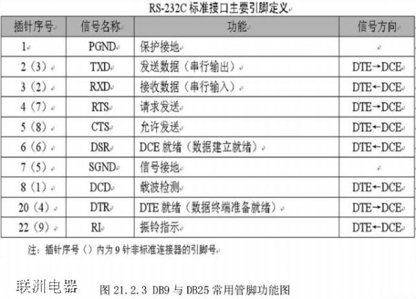 RS-232C定義了數(shù)據(jù)終端設(shè)備(DTE)與數(shù)據(jù)通信設(shè)備(DCE)之間的物理接口標(biāo)準(zhǔn)。RS-232C 接口規(guī)定使用 25 針連接器,簡稱 DB25,連接器的尺寸及每個插針的排列位置都有明確的定義,如圖 21.2.1 所示: