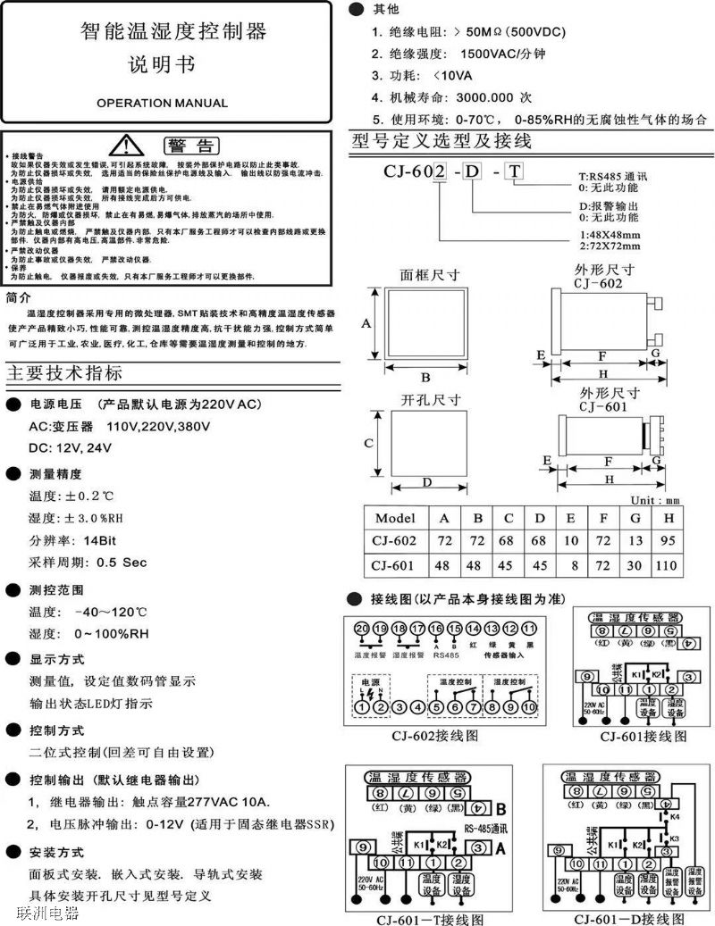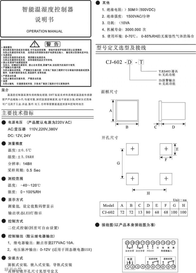 ●測(cè)控范圍:溫度:-40~100℃ 濕度:0~100%H