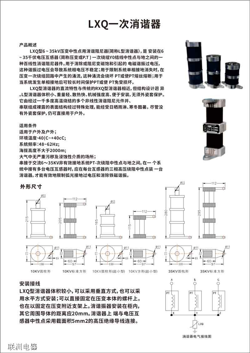一次消諧裝置體積小、重量輕、散熱快、強度高、便于安裝等特點,適用于各種電壓互感器。