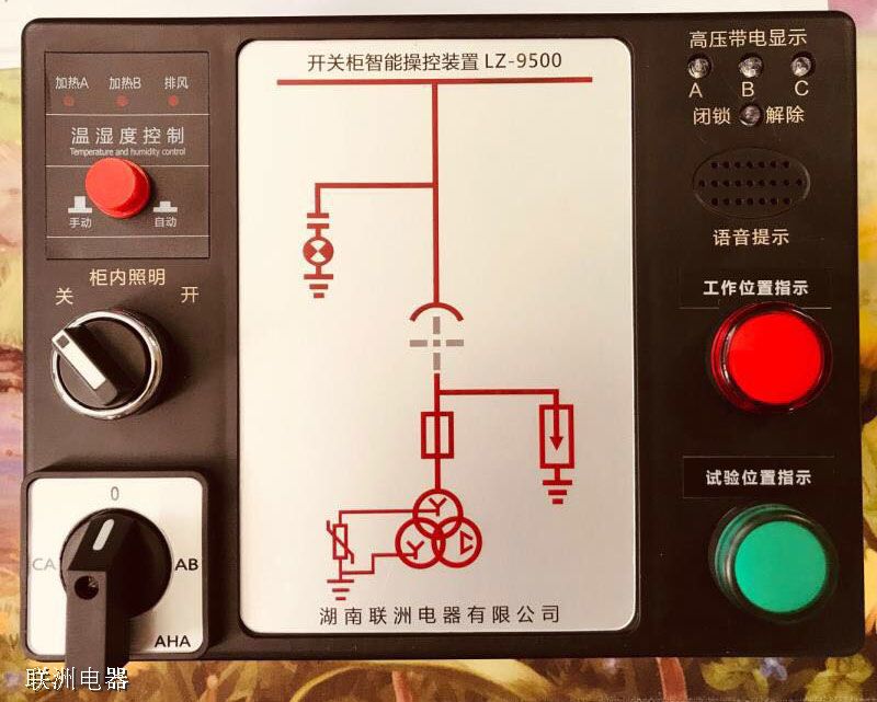 LZ-9500開(kāi)關(guān)柜智能操控裝置是一種新型的集多功能開(kāi)關(guān)模擬顯示、溫濕度數(shù)據(jù)顯示、多參數(shù)監(jiān)控于一體的高度集成化裝置,可用于各種電壓等級(jí)的開(kāi)關(guān)柜,包括中置柜、手車柜、固定柜、環(huán)網(wǎng)柜等多種柜體。具有動(dòng)態(tài)一次模擬圖、柜內(nèi)溫濕度顯示、高壓帶電提示、自動(dòng)除濕等功能,特別是其中應(yīng)用了本公司自主知識(shí)產(chǎn)權(quán)的熱故障預(yù)警系統(tǒng)技術(shù)——以無(wú)線傳輸?shù)姆绞綄⒐駜?nèi)各觸頭、母排及電纜頭的溫度采集到主機(jī)上面,通過(guò)液晶屏顯示出來(lái),同時(shí)設(shè)置了溫濕度和溫升的超限報(bào)警等獨(dú)特功能,為同行業(yè)類似產(chǎn)品所不及。并且具有RS485通訊接口,可與上位機(jī)的組態(tài)軟件實(shí)時(shí)通訊,使用戶在值班室就能及時(shí)得到現(xiàn)場(chǎng)的開(kāi)關(guān)柜狀態(tài)和溫濕度數(shù)據(jù),以便統(tǒng)計(jì)和分析。人體感應(yīng)帶電提示、語(yǔ)音防誤提示、帶電閉鎖、自動(dòng)加熱除濕,大大增加了裝置的安全性能。此外還具有電力參數(shù)測(cè)量,包括電流、電壓、有功功率、無(wú)功功率顯示等功能,給用戶提供足夠的信息量。集多種功能于一身,可取代現(xiàn)有的許多功能單一的測(cè)控裝置。