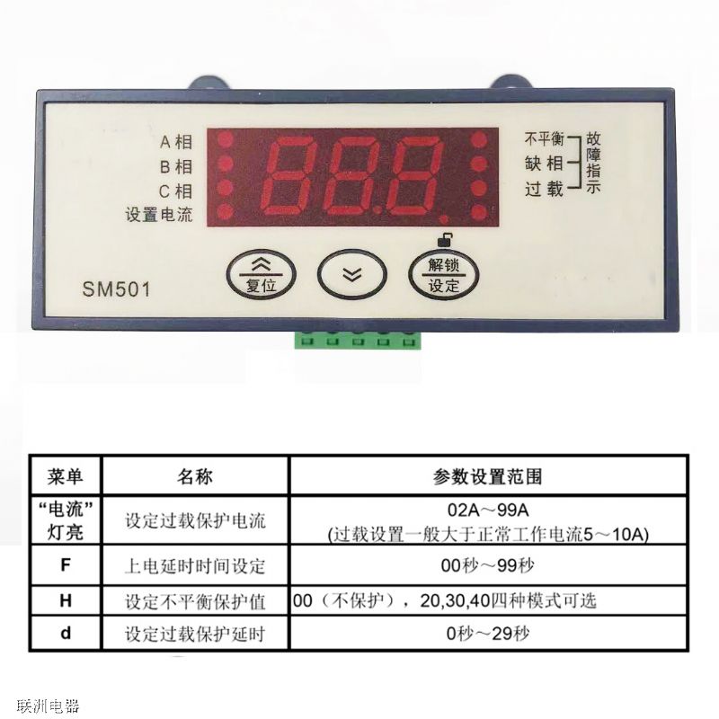SM502/501數(shù)顯電流過載相序保護的說明書